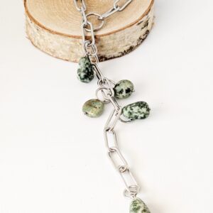 El collar Nuru es una fusión perfecta de energía y elegancia. Elaborado con acero inoxidable, piedras naturales y detalles de cristal, refleja luz y vitalidad en cada movimiento. Su diseño versátil combina la resistencia del metal con la delicadeza de los materiales naturales, creando una joya que transmite armonía, estilo y personalidad. Ideal para quienes buscan un accesorio con carácter y brillo propio.
