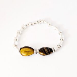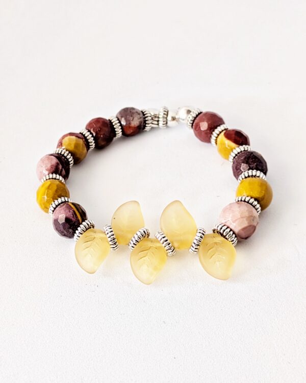 Pulsera Esencia Dorada, confeccionada a mano con piedras naturales seleccionadas por su pureza y su armonía cromática, esta pieza revela la calidez del ocre en diálogo con los destellos de las hojas de cristal. Cada elemento se entrelaza con sutileza para crear un equilibrio perfecto entre fuerza, serenidad y elegancia.